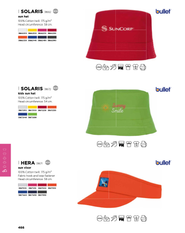 100% Cotton twill. 175 g/m2 Fabric hook and loop fastener Head circumference: 58 cm.